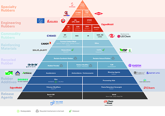 The sustainability aspect has been gaining more and more importance for years now and is a growing focus in the rubber industry. Together with our suppliers, we would like to offer you solutions to make your production and products more sustainable. From recyclates to bio-based products, you will find a selection of sustainable products here.